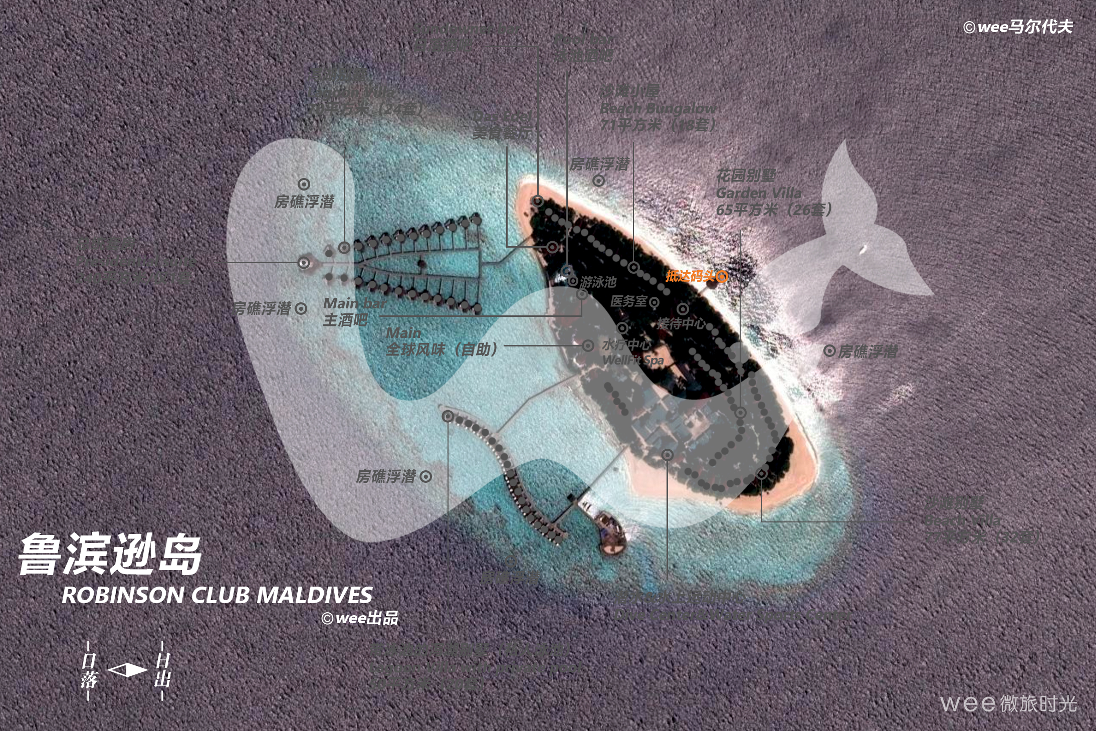鲁滨逊岛(Robinson Club Maldives)2009年开业,2013年重新装修,属于ROBINSON酒店品牌,环岛周长1260米,在马尔代夫属于中型度假岛屿。