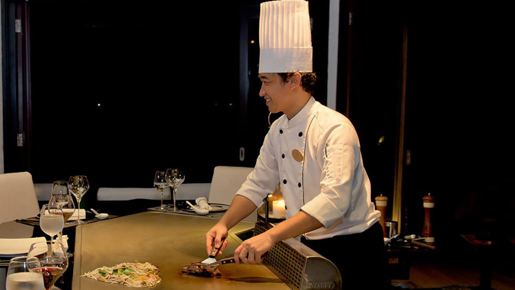 优雅的内部装潢是为了更好的衬托菜肴本身。烹饪台的上方有突出的吊灯和金色的花环装饰。整个餐厅美轮美奂。菜单提供亚洲最受欢迎的菜肴,也提供泰国和印度风味的美食来丰富选择,从世界各地著名的葡萄酒酒窖精选的优质葡萄酒可以为晚餐锦上添花。