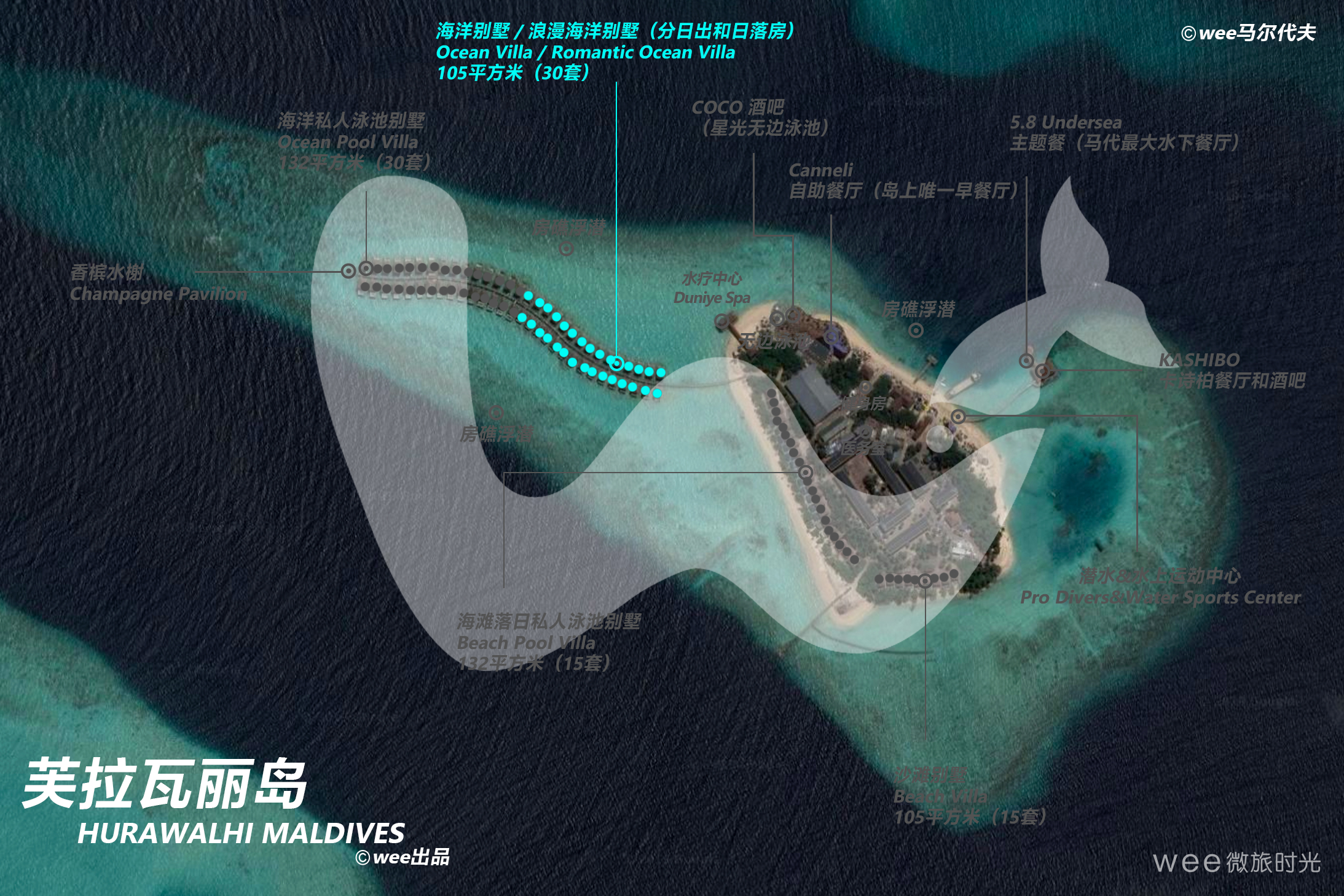 此房型分日出和日落房,户型和浪漫海洋别墅类似。日出房海洋别墅朝向日出方向,日落海洋别墅可以欣赏到美丽的马尔代夫日落美景。