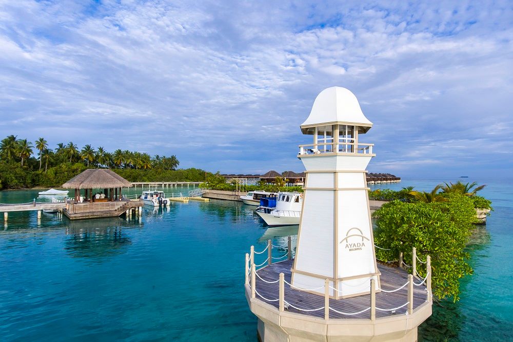 经过近1小时的快艇,远远就可以看到Ayada的地标-白色灯塔!这也意味着你已经到了抵达码头,下了快艇后,会有一个欢迎仪式,阿雅达岛经理会带领相关的管家(配备好的私人管家)及工作人员,敲着手鼓在码头迎接,然后为每一位客人佩戴纪念小挂件,令人倍感温馨。