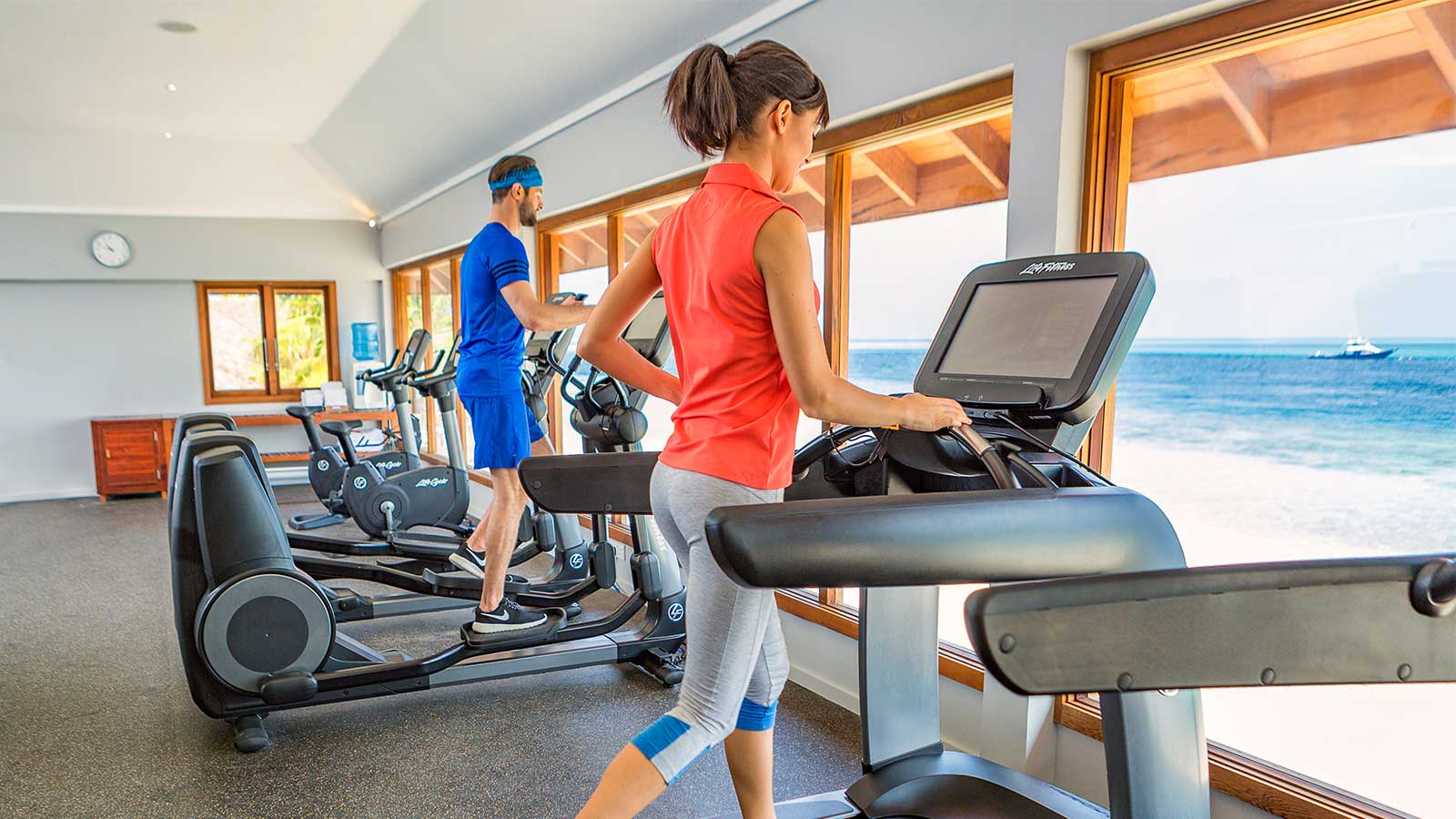 享受畅快锻炼的同时,还能通过2层楼的健身中心看到岛礁的美景和Dhanifaru的泻湖,说不定还能看到海豚和蝠鲼。