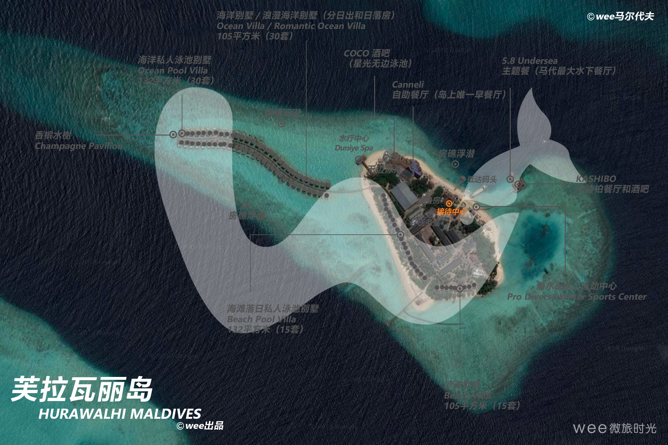 ∙ 婚礼服务:岛上提供婚礼服务,5个地址可以选,包括著名的5.8水下餐厅,还有无人岛婚礼、沙滩婚礼等。预定酒店时提前和工作人员沟通,他们会推荐和定制你想要的婚礼。