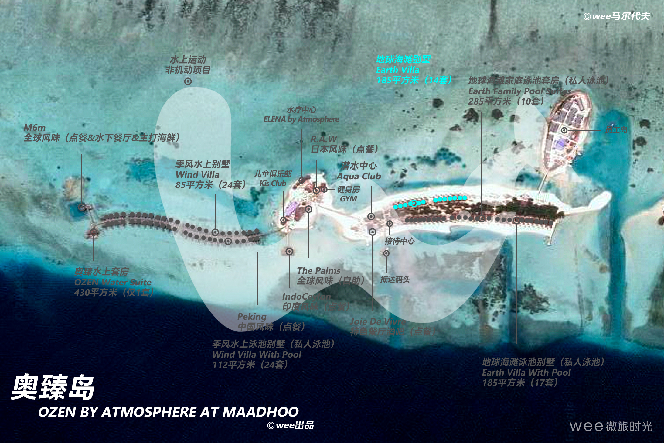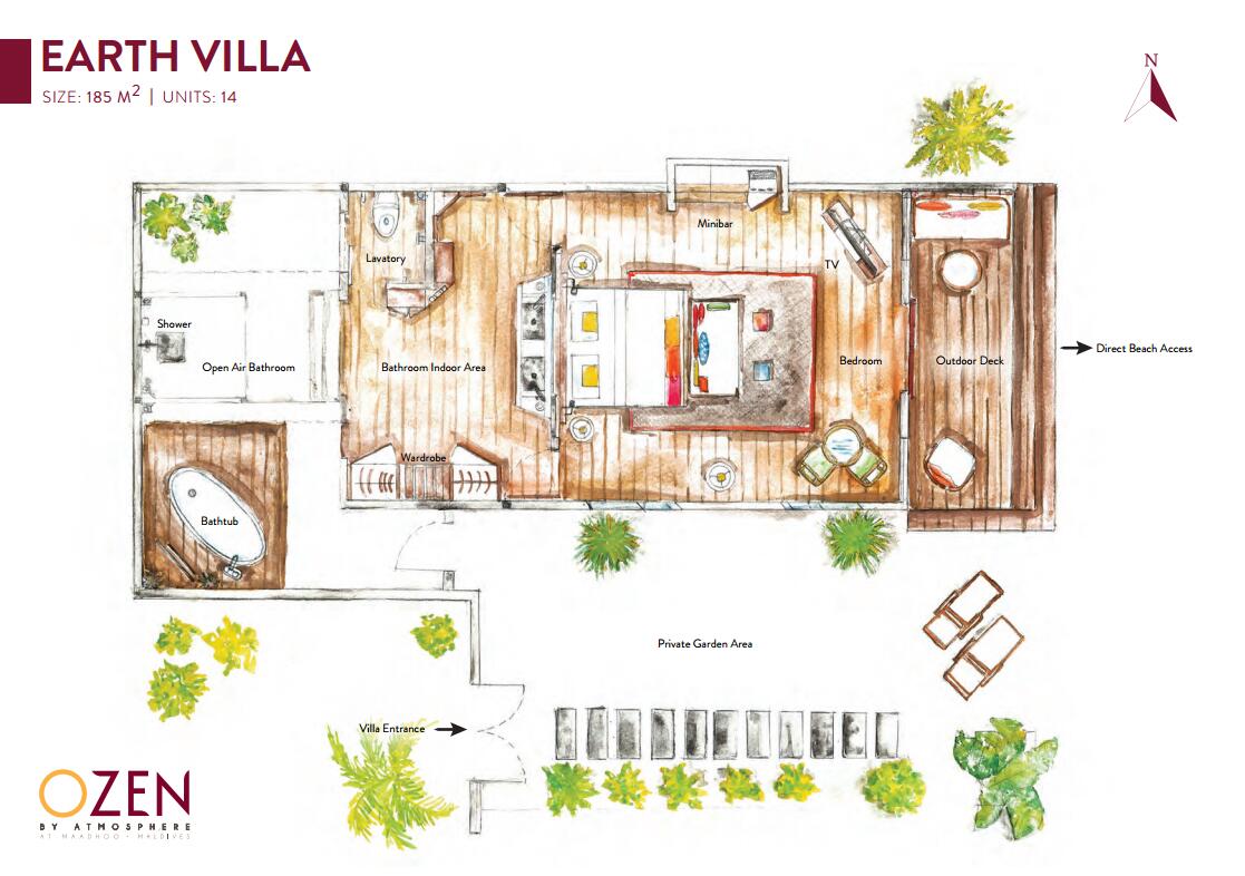 14栋地球海滩别墅是奥臻岛最为基础的房型,拥有185平米的惊人面积,这些令人惊叹的独立海滨别墅拥有高度倾斜的天花板,拥有豪华的内饰,房间采用明快的色调装饰,每一个别墅都有一个大型的户外甲板和一个热带花园以及一个宽敞的室外浴室,别墅均设有大型户外甲板,热带花园以及带手工制作的浴缸和季风淋浴的宽敞户外浴室。