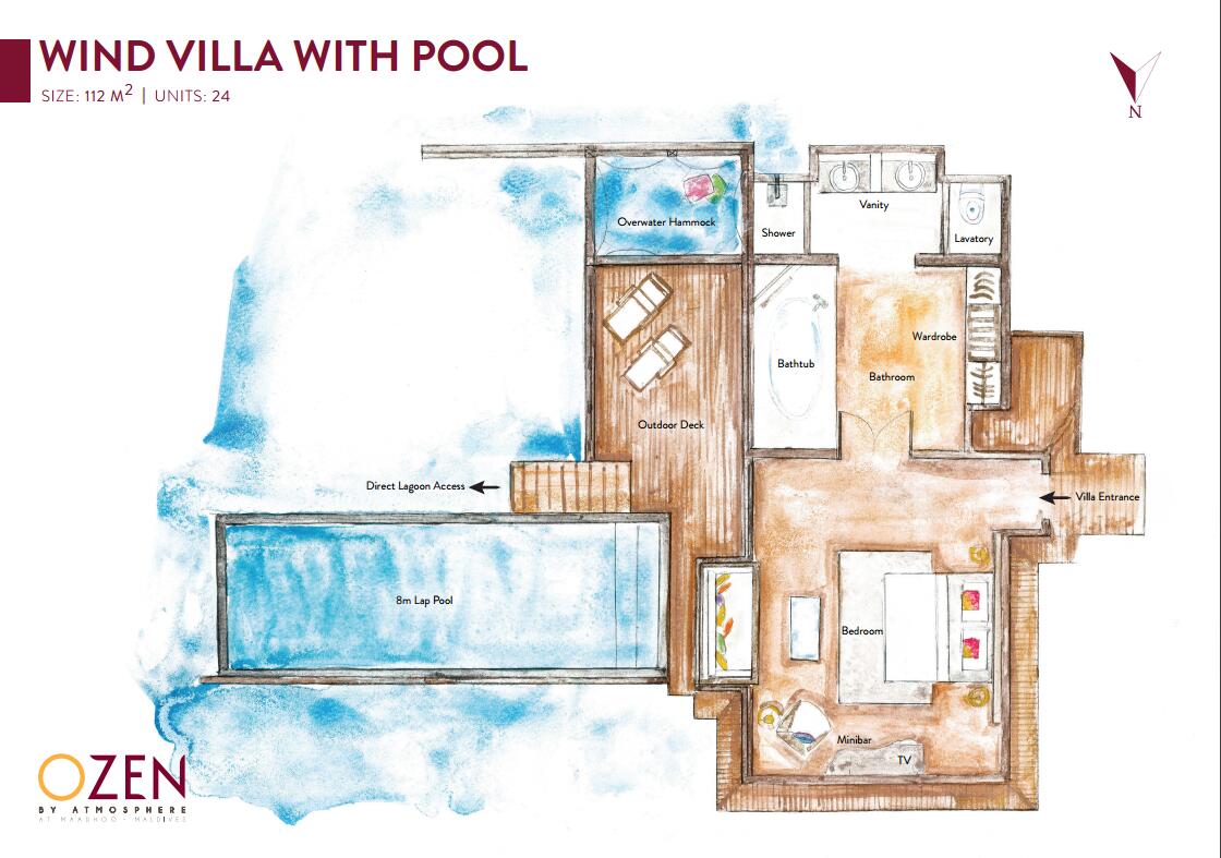 季风水上泳池别墅是季风水上别墅的升级版本,季风水上泳池别墅面朝西侧,和季风水上别墅一样,只是泳池水上别墅额外增加一个8米长,接近20平米的私人泳池,可以欣赏最佳日落景观。