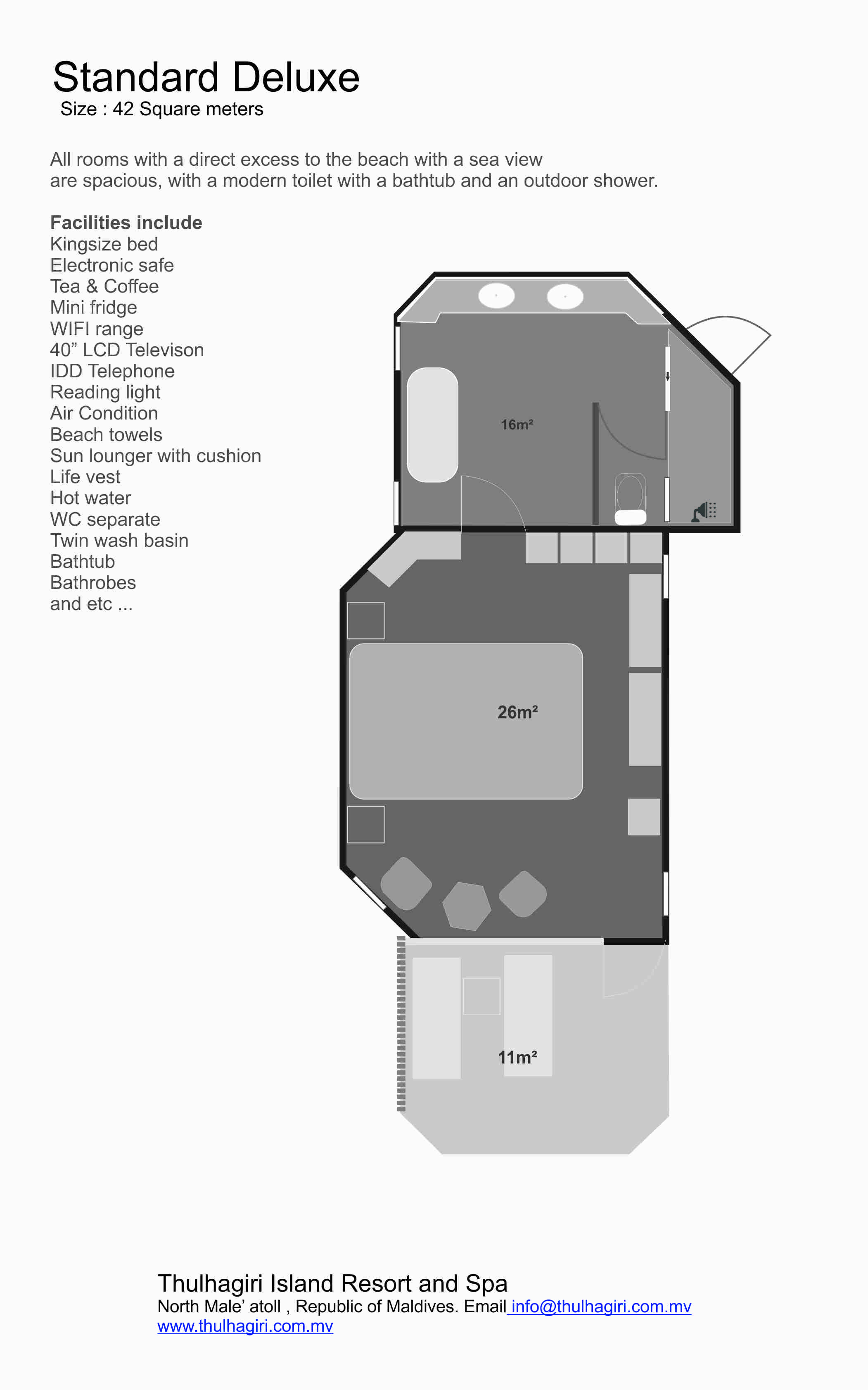 50间海滩简易别墅,俯瞰海滩,享有海景,宽敞,配有一张特大号床和一个带露天淋浴的现代化大浴室。客房设有豪华的连接浴室,配有现代化的设施,包括全景玻璃镜子和双洗手盆。
