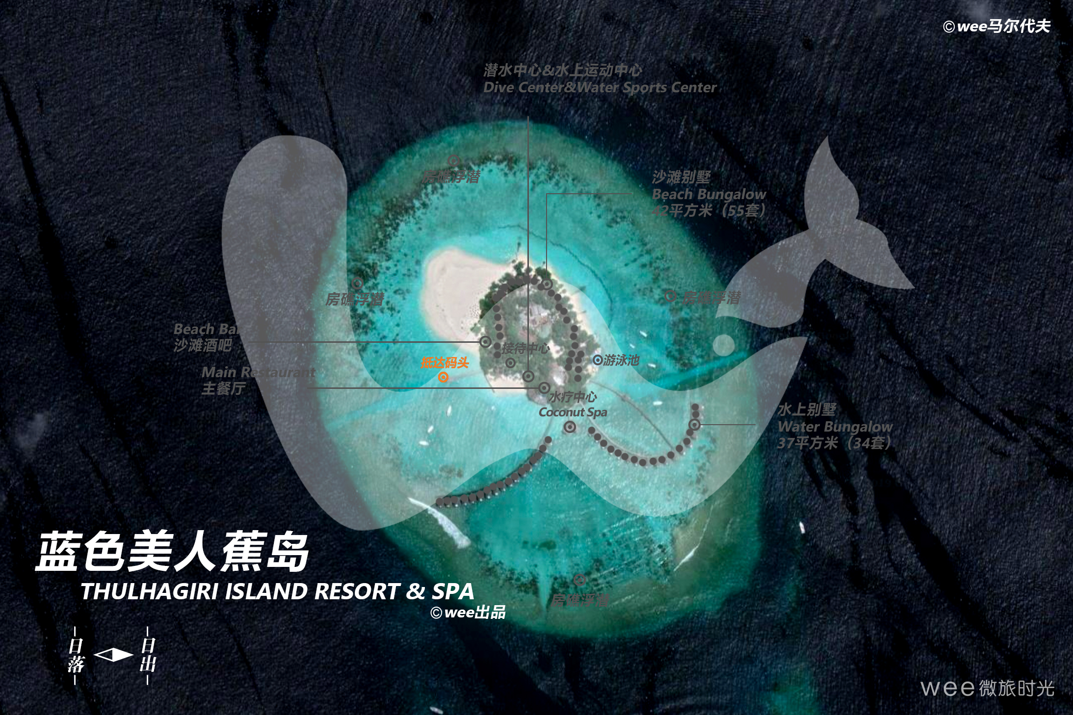 蓝色美人蕉岛位于北马累环礁,距离马累机场15公里,乘坐快艇需要25分钟。