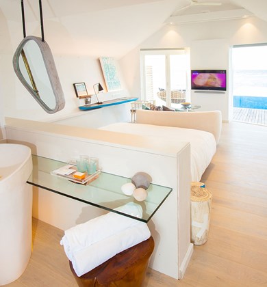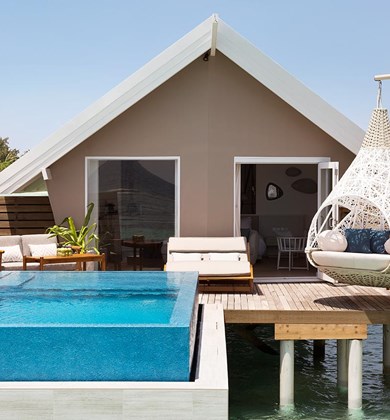 悬于水面之上,占地110多平方米。独一无二的浪漫水上别墅,极致的私密空间,舒适静谧。室内设计精雕细琢、美轮美奂,将现代美学与传统小屋建筑风格完美融合,可远眺海洋美景,并可直达蔚蓝的环礁湖。每个别墅都配有一个时尚的卧室,内有丽世的招牌‘酣然入睡’床,一个洒满阳光的浴室和独立的双人淋浴间。体验最先进的科技设施,包括48英寸的弧形电视、配有110英寸投影荧幕的家庭影院系统。