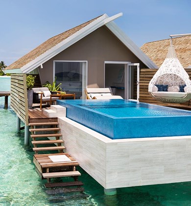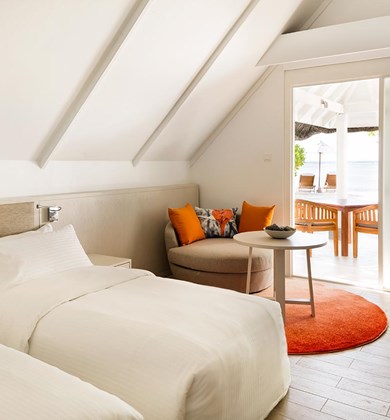 海景阁,从容舒适,享受真正的岛屿生活,一切美景尽收眼底,倾听天籁之音。阳光透过高挑的茅草屋顶,豪华浴室自带私人花园,你可享受新鲜空气,露天淋浴。海景阁同样是亲子入住的不二之选。