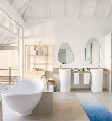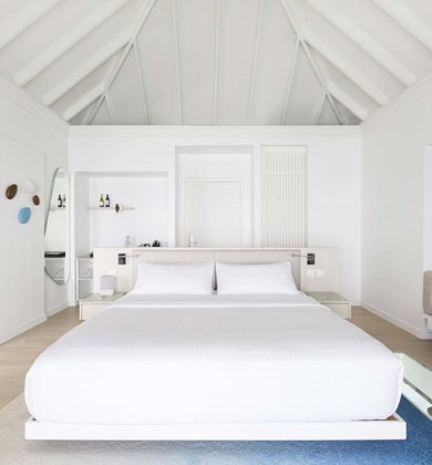 豪华水上别墅悬于水面之上,可欣赏印度洋令人屏气凝神的美景,也可直达环礁湖。卧室极其宽敞,特大号双人床、沙发床,宽敞的浴室配上海景浴缸以及独立淋浴间。享受浪漫的马尔代夫之旅,水上别墅实乃首选。