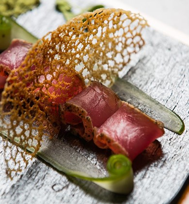 不止是在时髦现代的餐厅享用美馔而已,UMAMI餐厅如同舞台剧般精致夺目。餐厅的墙面装饰着鲜红的珊瑚礁,与舞弄刀叉的厨师们交相辉映。坐在钴蓝色寿司吧的长椅上,观赏大厨们如何将刚捕捞的海鲜烹饪成顶级生鱼片、寿司和寿司卷。