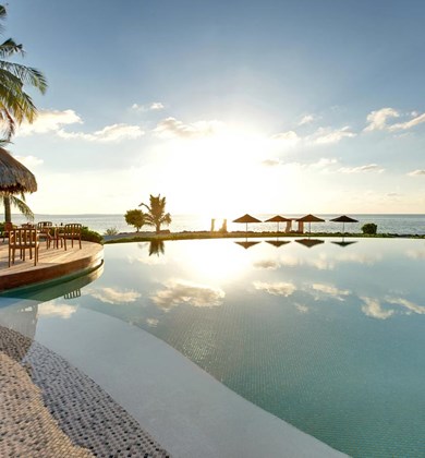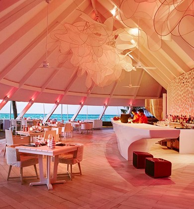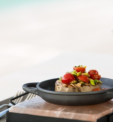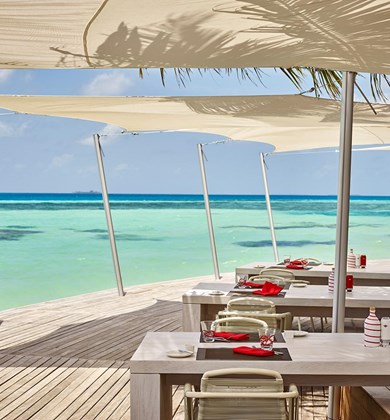 在细软沙滩上的燃木烤炉前选一块新鲜美味的披萨:酥松薄脆配以最新鲜的食材,烘烤到完美的状态……脚踏之处沙地柔软,目之所及遍是海景,清风悠悠吹过发间。这真是美好时光的秘诀!餐厅边上还有很适合拍照的网床。