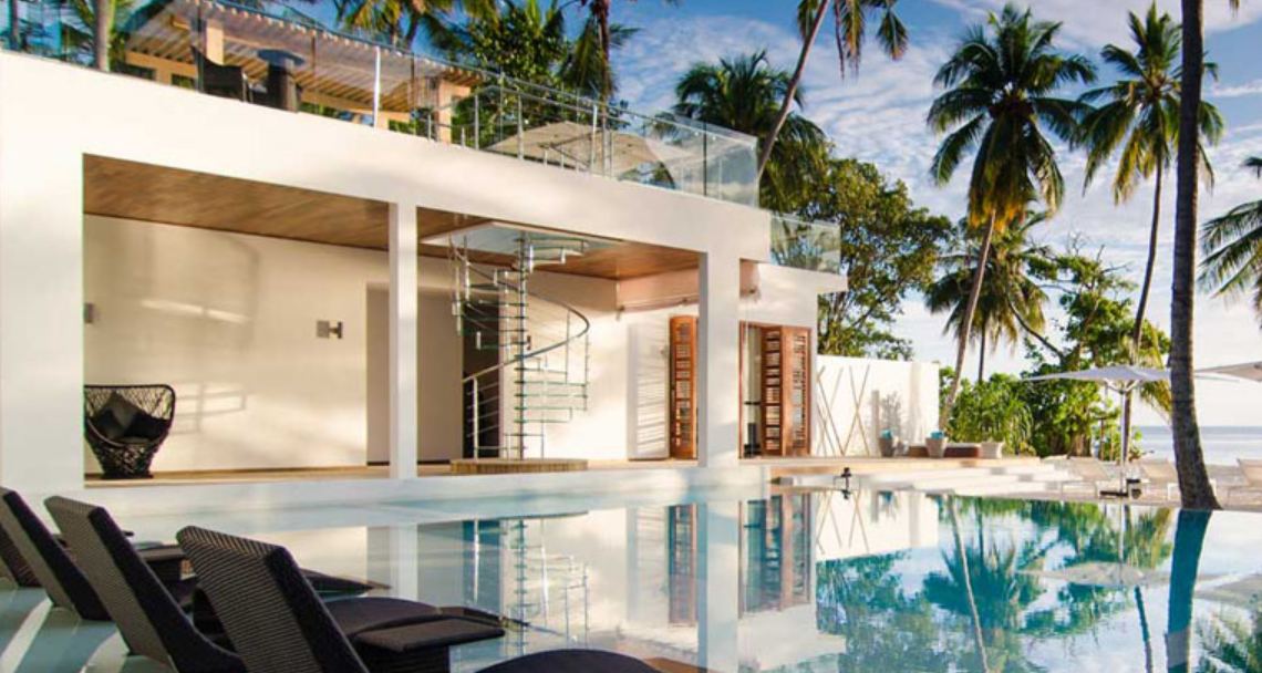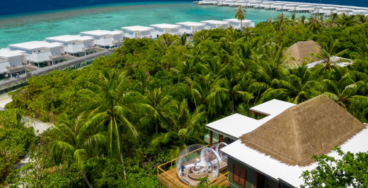 阿米拉岛是6星级的度假酒店,客房总数67套。其中沙屋有18套,水屋44套,还有非常有特色的树屋5套(【酒店】栏目内有详细的每个房型介绍和预定提醒哦~),客房密度0.3套/1000平方米。房型最小面积也有200平米,而且都带有超火的“无边泳池”。