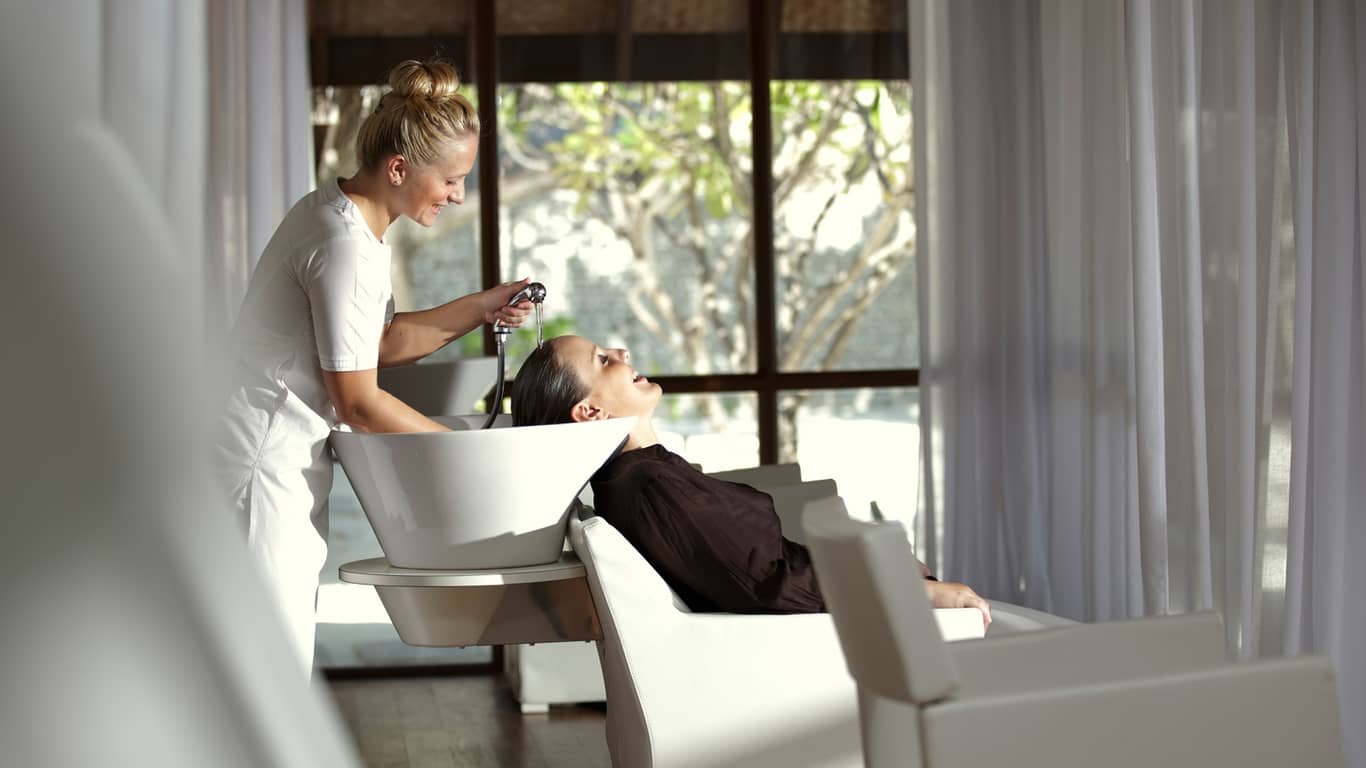 水疗中心由十座巨大的露天护理亭楼组成,其中三座用于阿育吠陀护理,或隐匿于繁茂的热带花园中,或建于湛蓝的礁湖上。这里多达10多种愈疗方式。