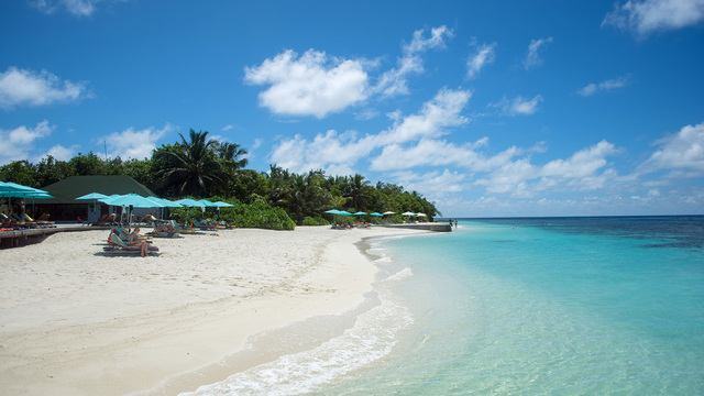 马尔代夫奥露岛环岛周长1810米,在马尔代夫属于中型度假岛屿,步行环岛一周大概需要20分钟。