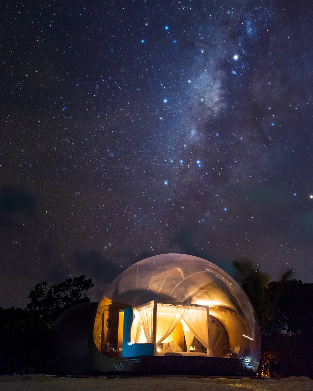 作为马尔代夫最时尚的岛屿,菲诺芙岛推出了一个令人惊叹的豪华“沙滩泡泡”帐篷 - 这是一个在拖尾沙滩尽头的僻静区域,为你提供令人难以置信的,更接近自然的体验。沿着岛上1.5公里沙坑的僻静地点,远离岛上标志性的1 OAK海滩俱乐部的声乐,泡泡屋专门为星空下的令人难以置信的浪漫,仅一夜的“Dream Eclipse”体验而设,从日落到日出。