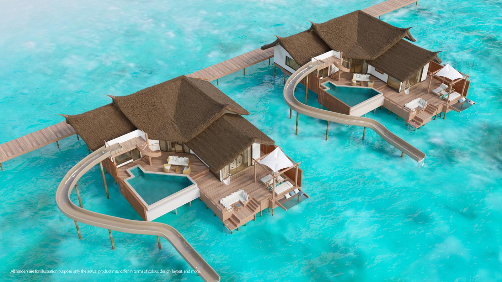 维塔维丽把水上别墅改造成水上滑梯别墅,套房采用带滑道娱乐设施,提供一切舒适体验;宽敞的空间营造出极致自由之感。独特的露台坐落于平台之上,由错层实木阳台构成,可饱览奇妙清澈的礁湖水域。透过精致的起居室玻璃地板,欣赏魅力无限的水下生物;或日落前沐浴在温暖的阳光下,享受惬意时刻。