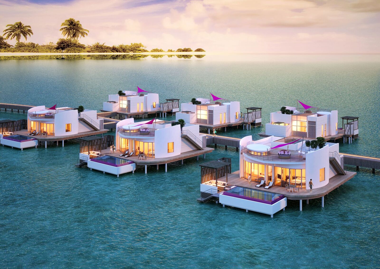 这是一座以航海造型与色调为特色,将超级游艇的气派和迈阿密南海滩的律动完美融合的唯美岛屿,这是一座打破马代传统茅草屋风格,大胆前卫、以粉红性感亮相的奢华现代化岛屿。