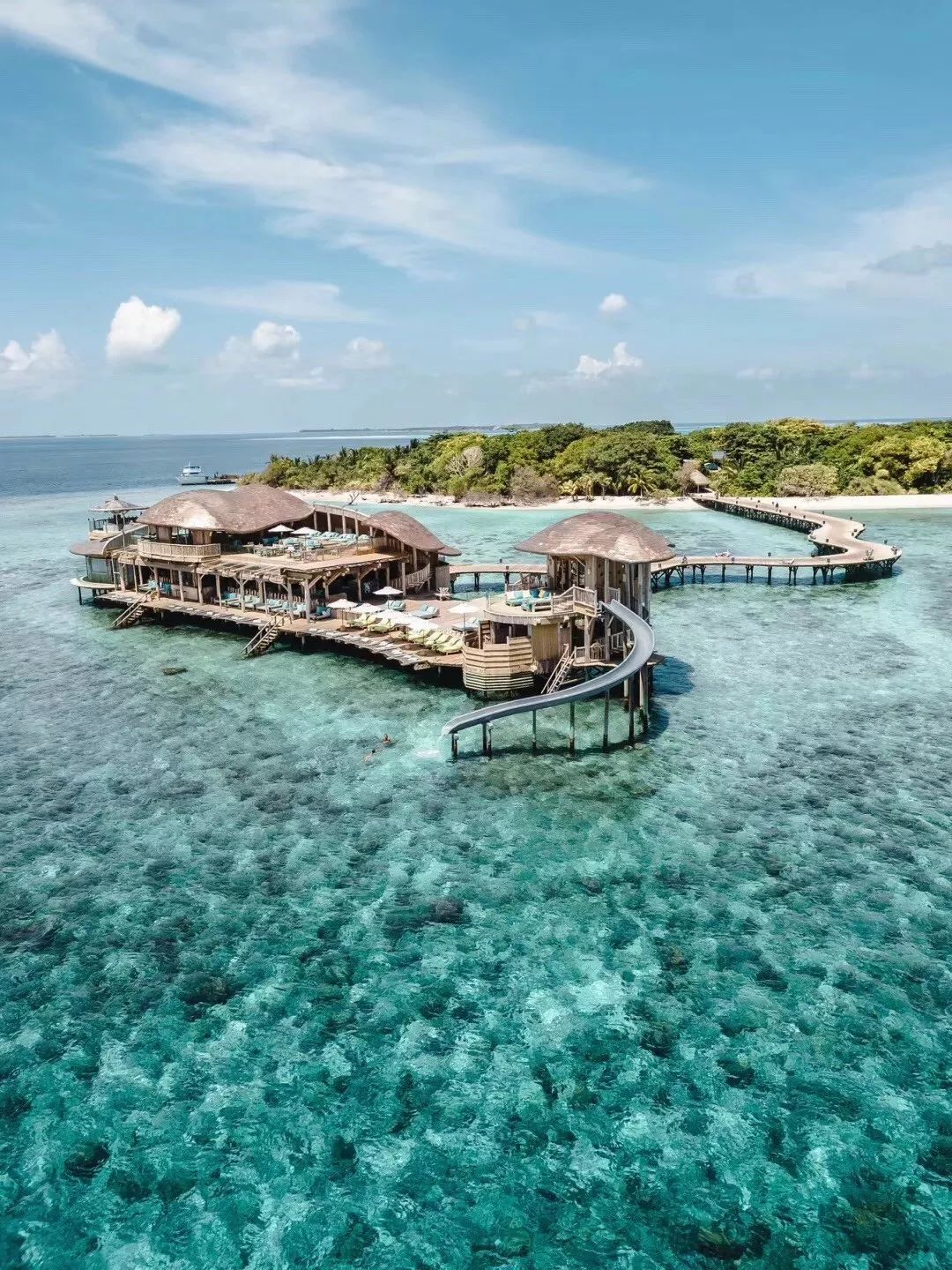 马尔代夫的水上滑梯是近来特别火的点,好多社交平台上都有水上滑梯的视频,目前马尔代夫的100多个度假酒店中带有滑梯的有好几个,其中三家都是索尼娃公司的,除了大名鼎鼎的索尼娃贾尼,还有索尼娃芙西和姬丽兰坎富士酒店。新晋网红岛屿维塔维丽岛也将水上别墅改造成水上滑梯房啦。