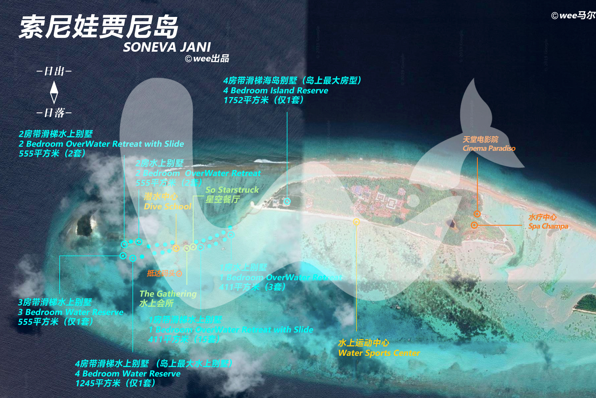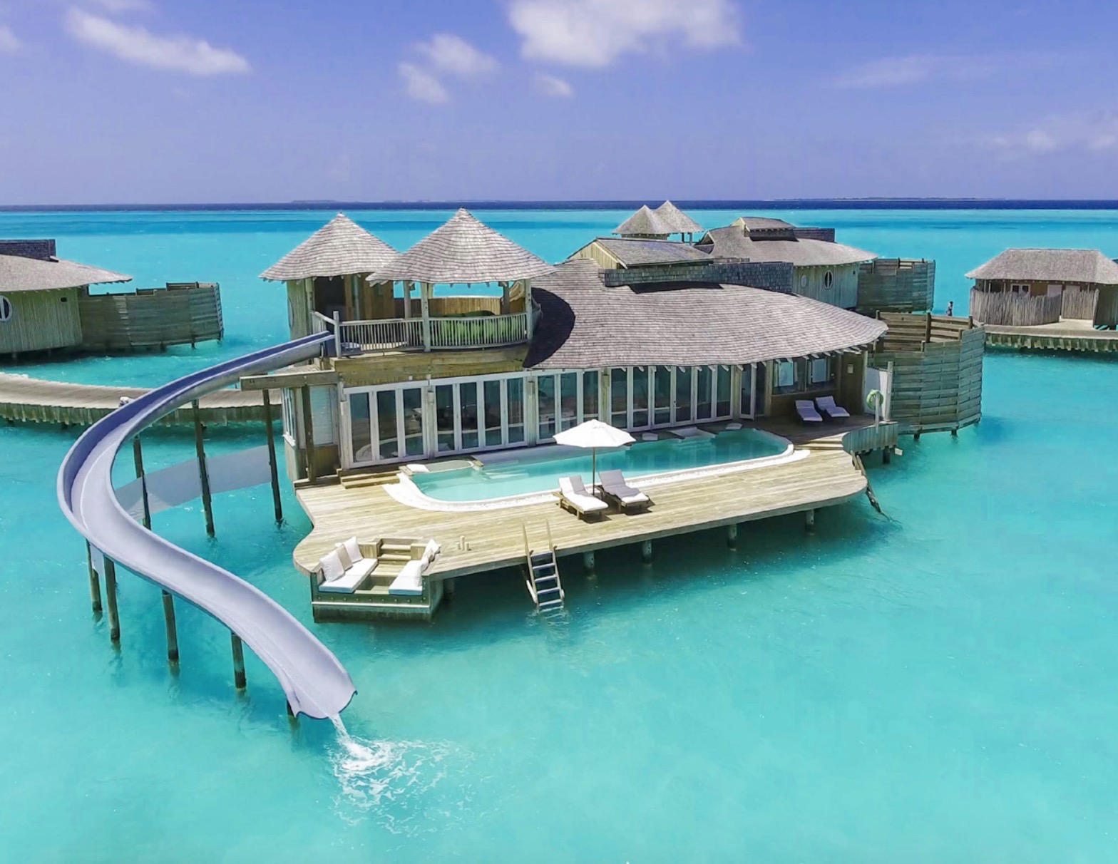 滑梯房数量最多的目前就是索尼娃贾尼啦,也是整个马尔代夫水上滑梯最先火爆的度假岛,岛上有29间带滑梯的房间,而且最先火爆在INS、Facebook、抖音、小红书等各大网站。除了1房水上别墅和2房水上别墅外的其他水屋都是带有水上滑梯的,可以直接从房间滑到大海,无数知名大V博主来这座岛只为体验一下水上滑梯。