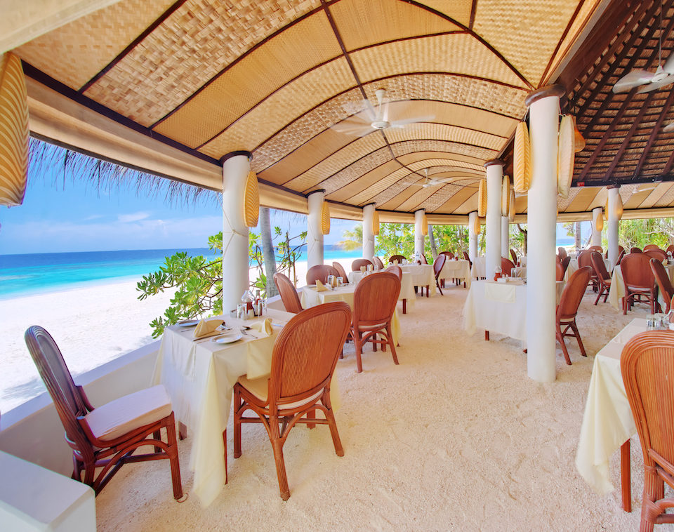 宽敞的沙堤酒吧和餐馆也别具风味,都建成别致的鱼形,每餐都是自助式,提供各种美昧的亚洲菜和欧洲菜,还经常有海味烧烤。房间提供的葡萄酒不贵,但如果你想放纵一下自己,全包的服务套餐也会是一笔不小的开销。