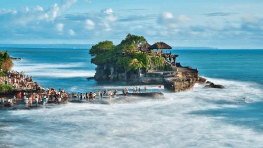 海神庙位于塔巴南(Denpasar),距丹帕沙(Denpasar)约20 公里,是巴厘岛中西部海岸的一座寺庙,也是巴厘岛六大寺庙之一。海神庙在巴厘语意指海中的陆(Land Sea),因为这座庙宇盖在一个经海水冲刷而形成的离岸大岩石上,在海水涨潮时,与其连接的通道会被淹没,无法通行,必须等待退潮才能进入庙宇参观。
