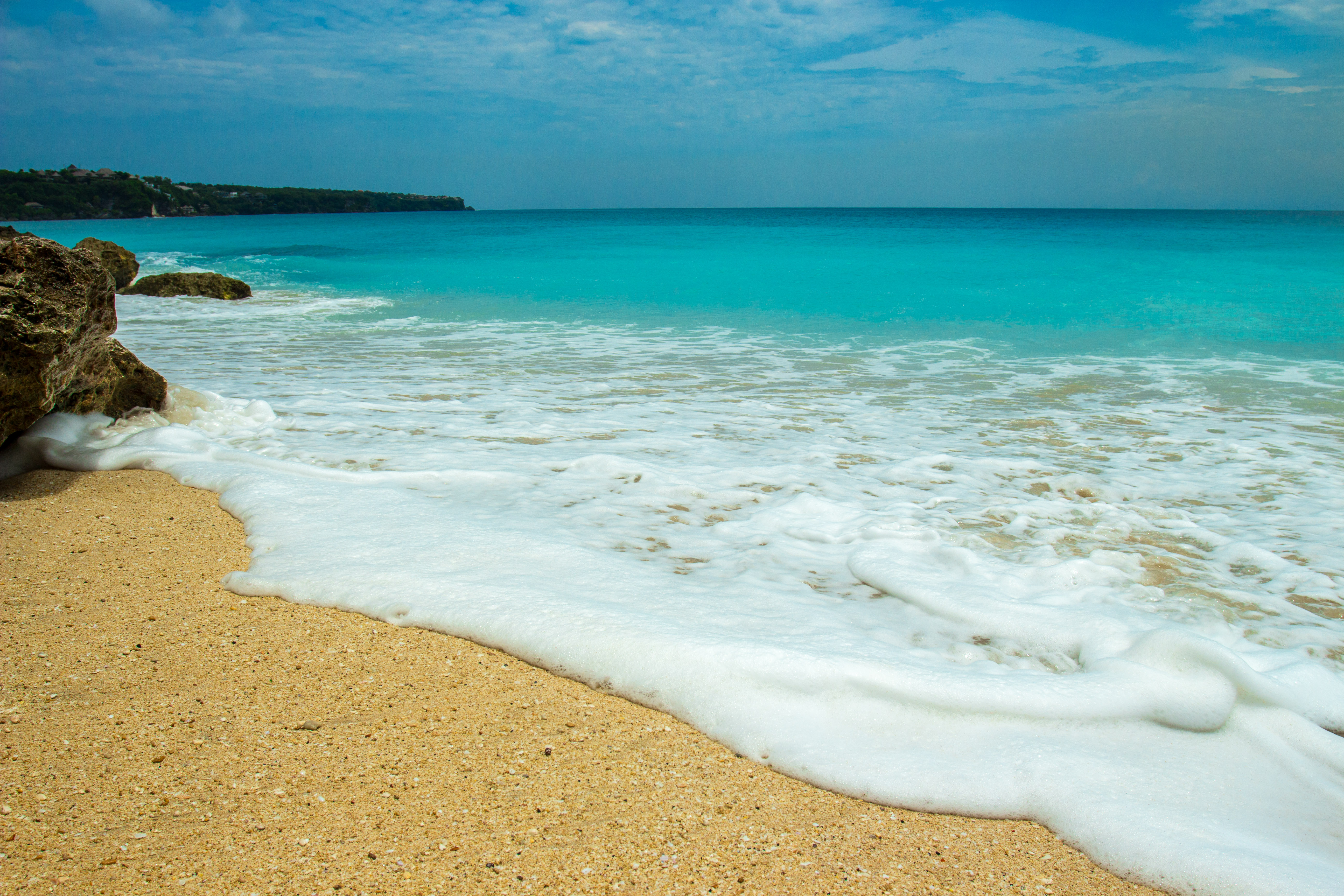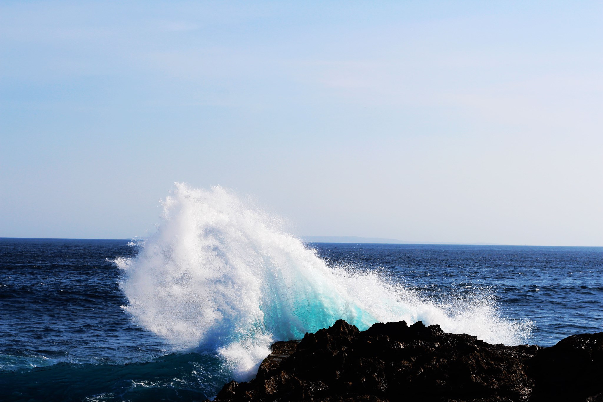 梦幻海滩和恶魔眼泪都在蓝梦岛的西边,两个景点离着不远。梦幻海滩海水很清澈干净而且颜色呈现出层次感,很漂亮。恶魔眼泪就是一个小小的海湾,浪涌上来都有几米高,特别壮观,激起阵阵水雾,彩虹不是每次浪打过来都有的,所以要耐心等待,抓住时机拍摄。不要太靠近礁石岸边,以免被拍到海中,周围没有什么安全措施或是屏障,所以要自己多加注意。