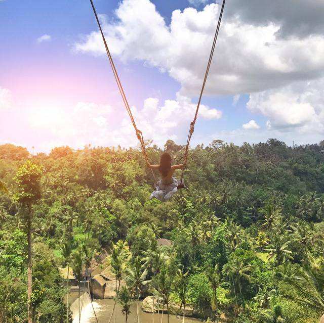乌布最火的网红秋千景点当属Bali swing,是在INS上走红的一个景点,椰林与山谷、河流相映成趣,典型的乌布独特景观。