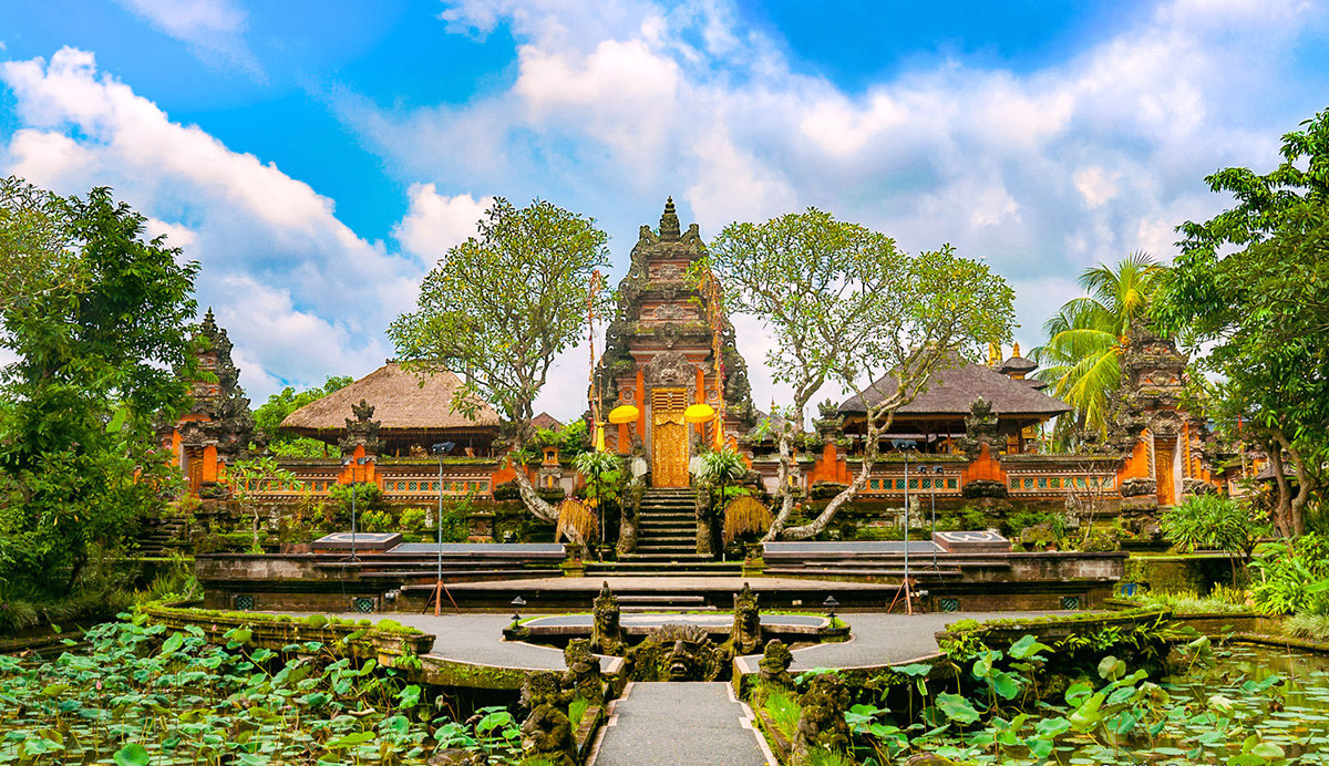 乌布皇宫位于素有巴厘岛艺术重镇的乌布市内两条主路Jl. Monkey Forest和Jl. Raya Ubud交叉口处的繁华地带,始建于16世纪。整座宫殿气势恢宏,宫殿内精致细腻的手工雕刻和贵气逼人的金箔装饰雍容华贵。皇宫内部就像一个花园,还有一些凉亭式建筑和雕像,充满了巴厘岛风情。