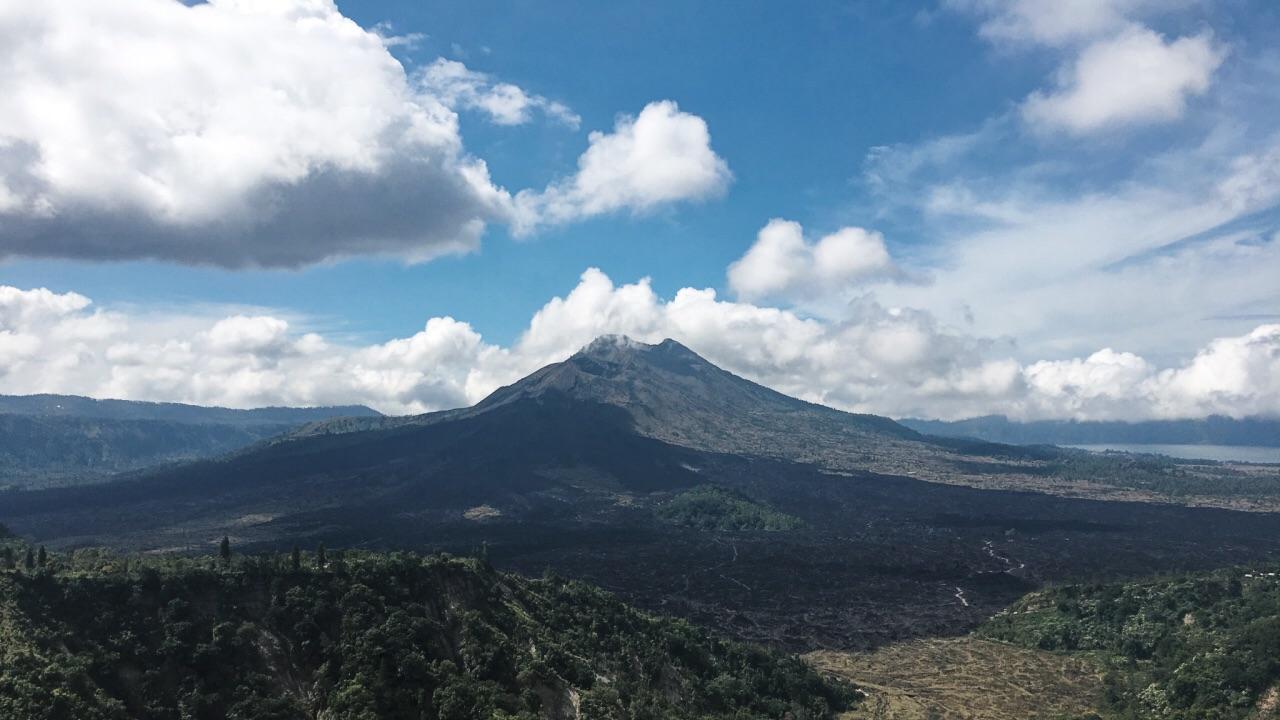 1917年曾经喷发过火山,摧毁了无数神社、村庄。但是也同样带来了土地的肥沃,火山周围一带栽种着柑桔、香蕉、咖啡、椰子等作物。这一带村民的习俗也和普通巴厘岛人不同。他们不进行火葬、土葬,而是天葬。
