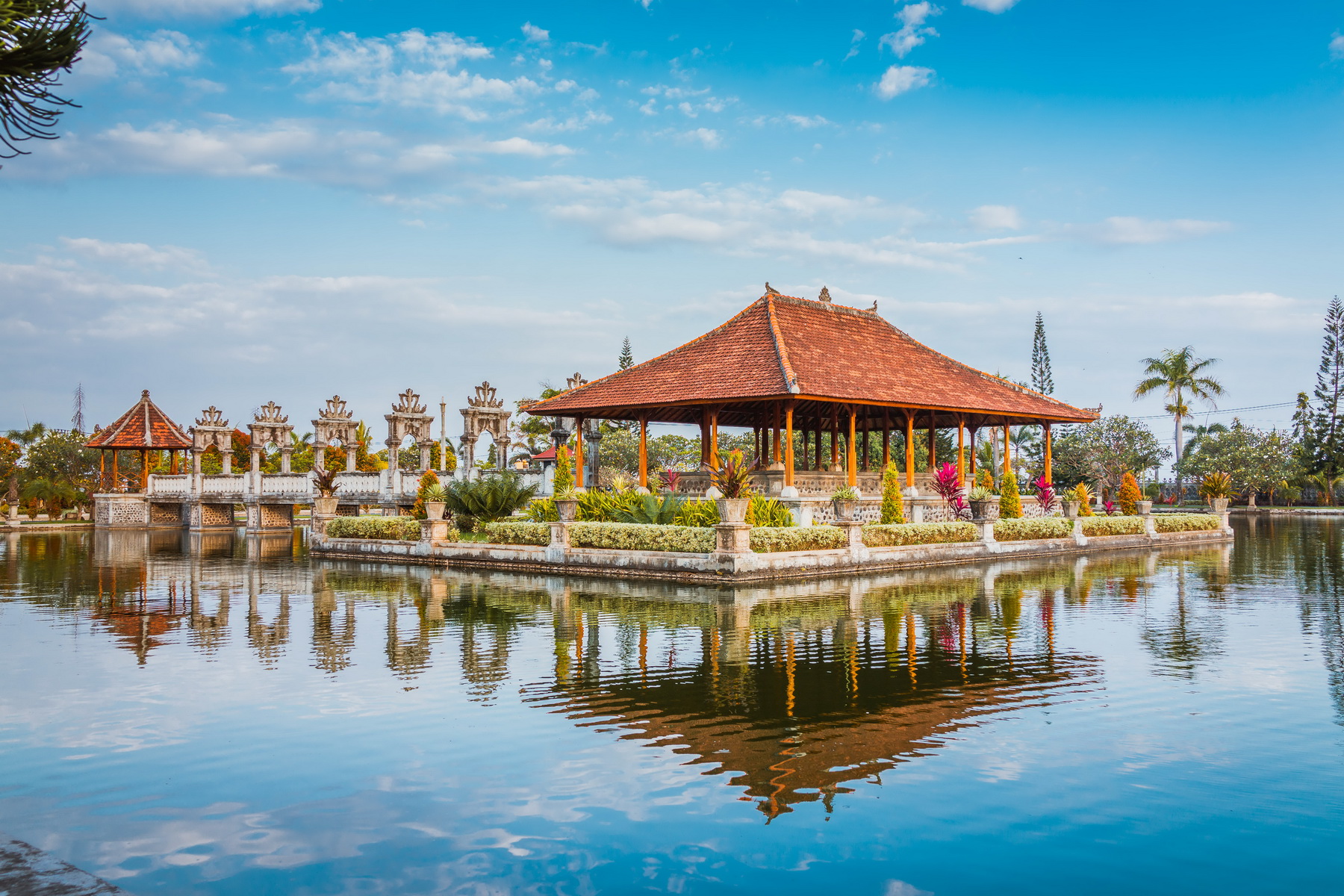 TamanUjung是位于巴厘岛安拉普拉以南5公里处的一个建筑群。在1921年,Karangasem的最后一位国王倾慕于这里美丽的风景而决意修建一座宫殿以便尽情享受这大自然的礼物。设计师匠心独具地将周围秀丽的植物景观与海洋、湖泊等丰沛水景融入设计当中,使整座宫殿大气恢弘而不失灵动气质!1979年的一场地震几乎将大部分的水上皇宫埋入地表,磨灭成沙石。仅存下来的只有少数颇具代表性的建筑,但也仅是残垣断壁,并且在经过数十年的风吹日晒显得沧桑而富于年代感。