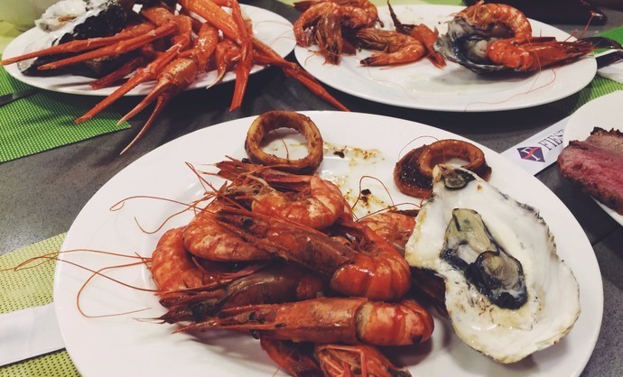 ·这里的海鲜种类丰富,生蚝、三文鱼、蟹腿、帝王蟹都超级新鲜。
