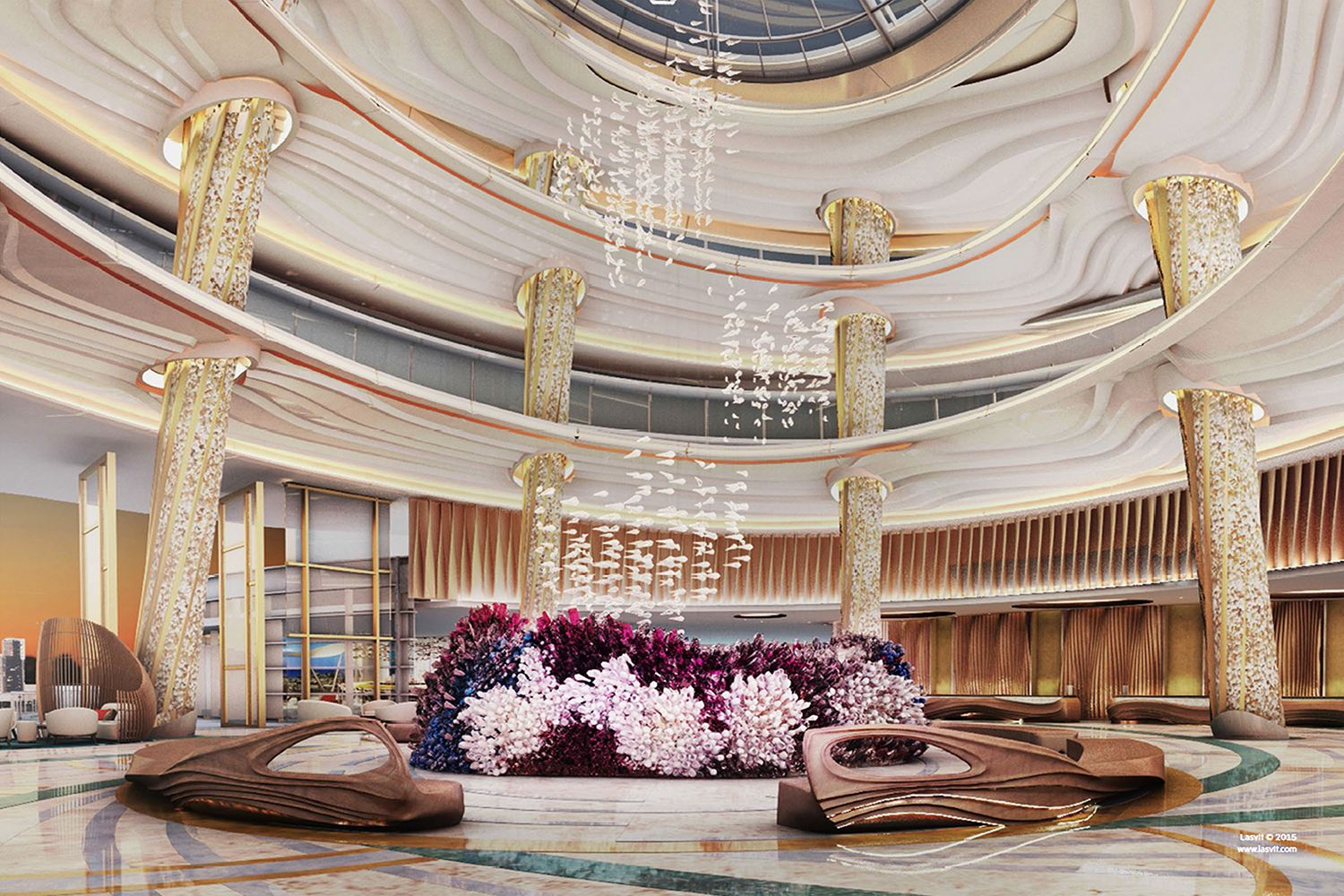 三亚-亚特兰蒂斯坐落于国家海岸海棠湾,占地面积达54万平方米,度假区由80余家国际著名的建筑和设计机构联手打造。设计风格融汇东西方特色文化以及琼岛本土文化,是集度假酒店、娱乐、餐饮、购物、演艺、物业、国际会展及特色海洋文化体验八大业态于一体的旅游综合体。