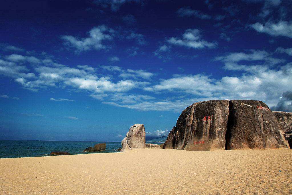 天涯海角风景区位于海南岛最南端,依山傍海,椰林婆娑,奇石林立,风景独特,以海滩上拔地而起的一对“天涯”“海角”石最为著名,是一处集椰风海韵的热带风光、白沙巨垒的自然景观、悠久独特的历史文化和多才浓郁的民族风情于一体的游览胜地。天涯海角的自然景观是由大型海滩岩、下马岭、天涯湾以及沙滩和海水组成。游览区主要有“天涯”石、“海角”石、“南天一柱”等景点。