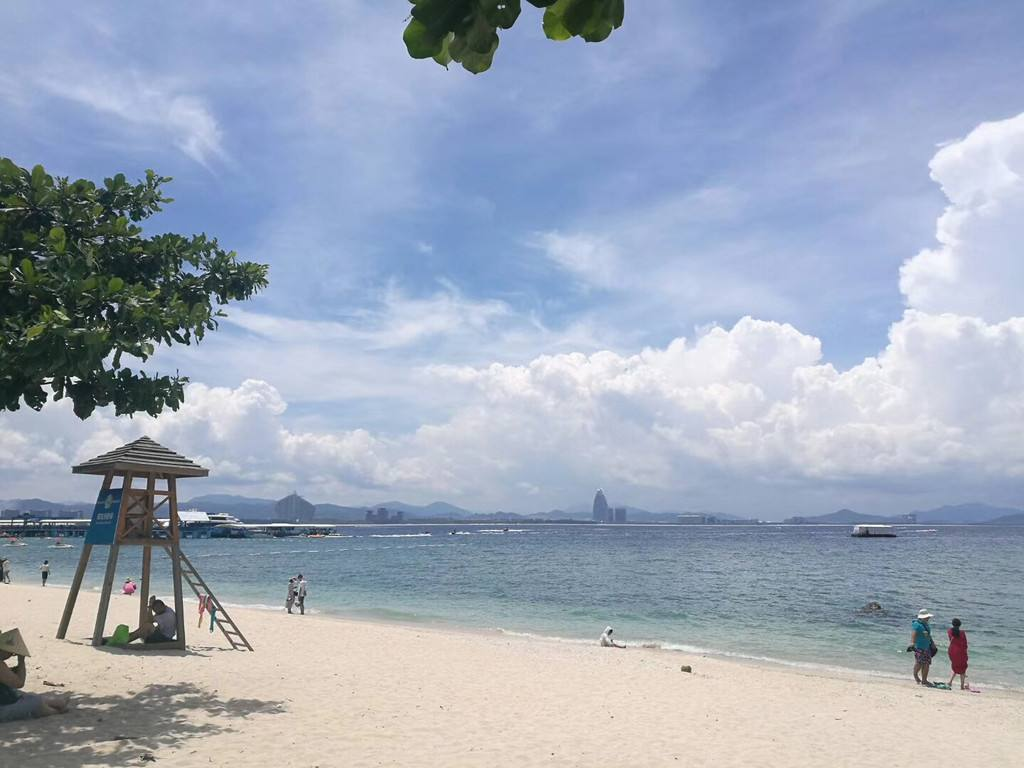 2、大东海“水暖沙白滩平”,使大东海名声早已蜚声海内外。这里的海湾呈弓形,东南平行的两条小山脉就像两道堤墙筑入浩瀚的南海,铸成海湾和屏障。