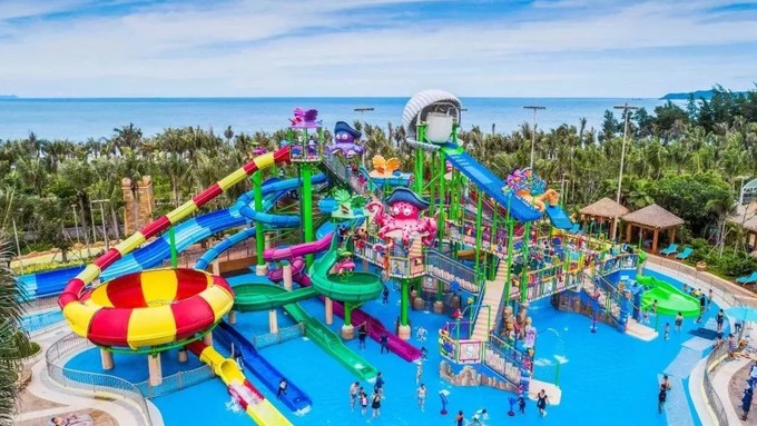 在海洋帝国不远处,首先感受到的是一波视觉冲击。 整个亚特兰蒂斯水世界最五彩斑斓的滑道就在这里。