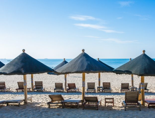 大东海水暖沙白滩平,使大东海名声早已蜚声海内外。这里的海湾呈弓形,东南平行的两条小山脉就像两道堤墙筑入浩瀚的南海,铸成海湾和屏障。大东海三面环山,一面大海,一排排翠绿椰林环抱沙滩,其碧海、青山、绿椰、白沙滩独特之美博得海内外游客的赞叹。