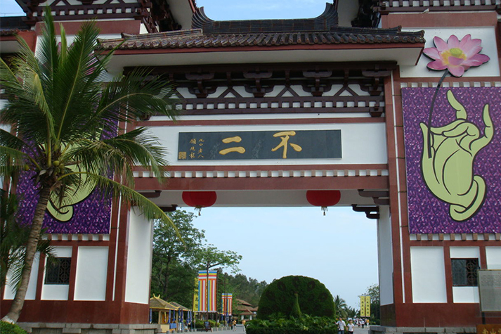 是景区大门景观,为南北朝风格建筑。游客进入此门,便进入了吉祥清静的南山佛教圣地。大门外的“不二”和大门内的“一实”系已故著名书法家顾廷龙老先生94岁时书。“一实”是“不二”的对应。