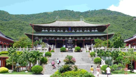 南山与观音,因缘殊胜。观音菩萨有十二心愿,其第二愿就是“愿长居南海”,故称南海观世音。南山踞南海之滨,形似巨鳌,古称鳌山,有观音坐骑之相。