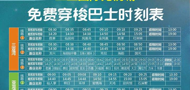 亚龙湾班车时间间隔不固定,一般是坐满即发车,免税店的免费班车要提前预约。至少提前一天下午17:00预约。首班车都是9:30分。