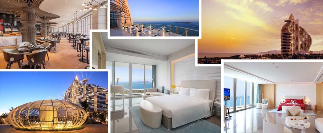 • 整座酒店拥有近1000套星级酒店套房及32栋海景VILLA,配有六国语言同声传译的国际会议厅,今日艺术汇,明星俱乐部,国际精品风情商街,7个室外主题泳池,6个特色餐厅等。
