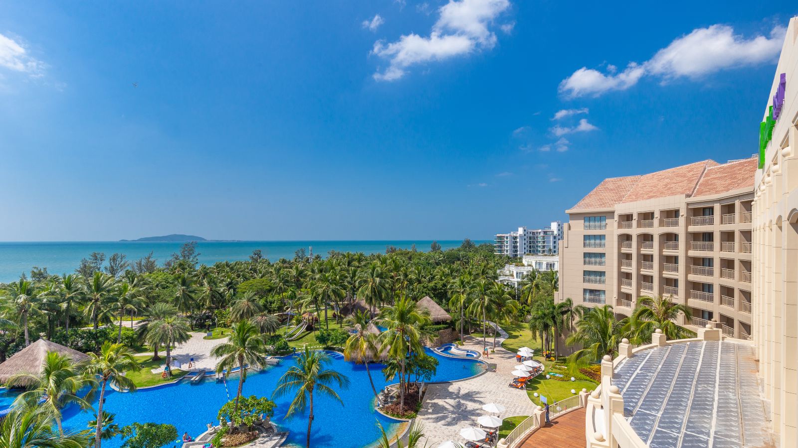 希腊式的白色房屋体现异国格调与大海完美结合;客房阳台均带有浪漫按摩浴缸,拥有五个大小、深浅不同的泳池;您可使用西门子全套厨房设备,有冰箱、吸油烟机、带烘干功能的洗衣机、电磁炉等方便设施。让您更为惊喜的是酒店每天安排的穿梭巴士去三亚海鲜菜市场购物。在这里您可以享受悠然假期,也可为家人烹制美味的海鲜大餐。