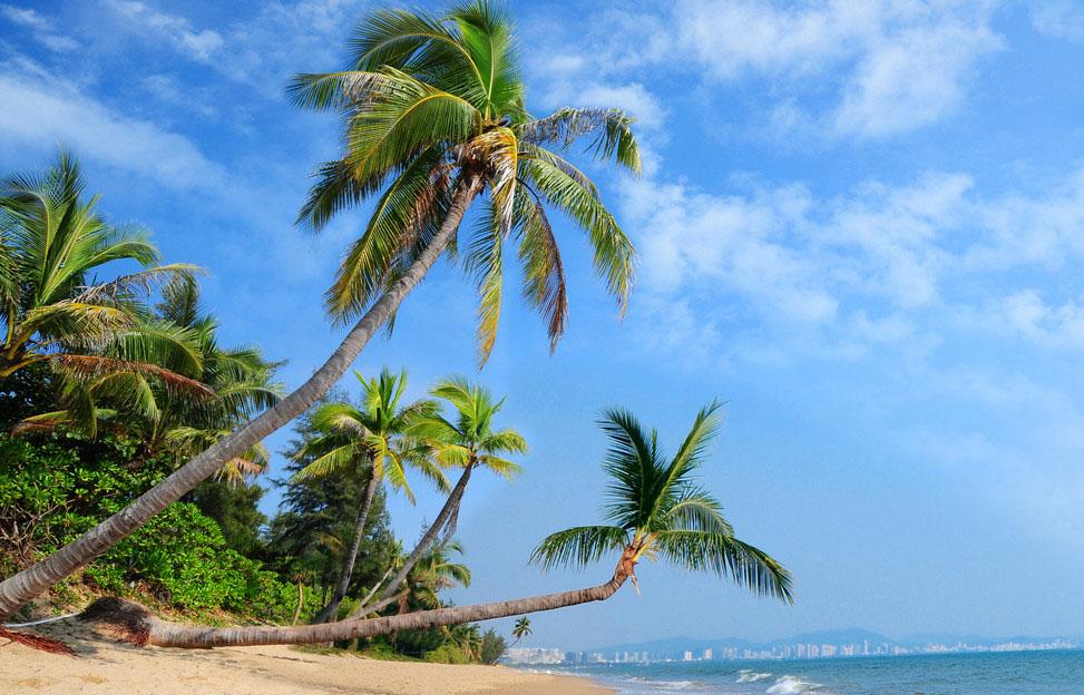 三亚北靠高山,南临大海,地势自北向南逐渐倾斜,形成一个狭长状的多角形。境内海岸线长258.65千米,有大小港湾19个。主要港口有三亚港、榆林港、南山港、铁炉港、六道港等。主要海湾有三亚湾、海棠湾、亚龙湾、崖州湾、大东海湾、月亮湾等。有大小岛屿40个,主要岛屿10个。