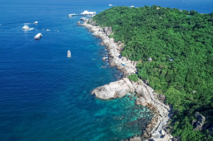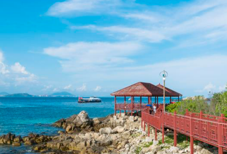 蜈支洲岛南部水域海底有着保护很好的珊瑚礁,是世界上为数不多的没有礁石或者鹅卵石混杂的海岛,是国内较好的潜水基地。极目远眺,烟波浩渺,海天一色。
