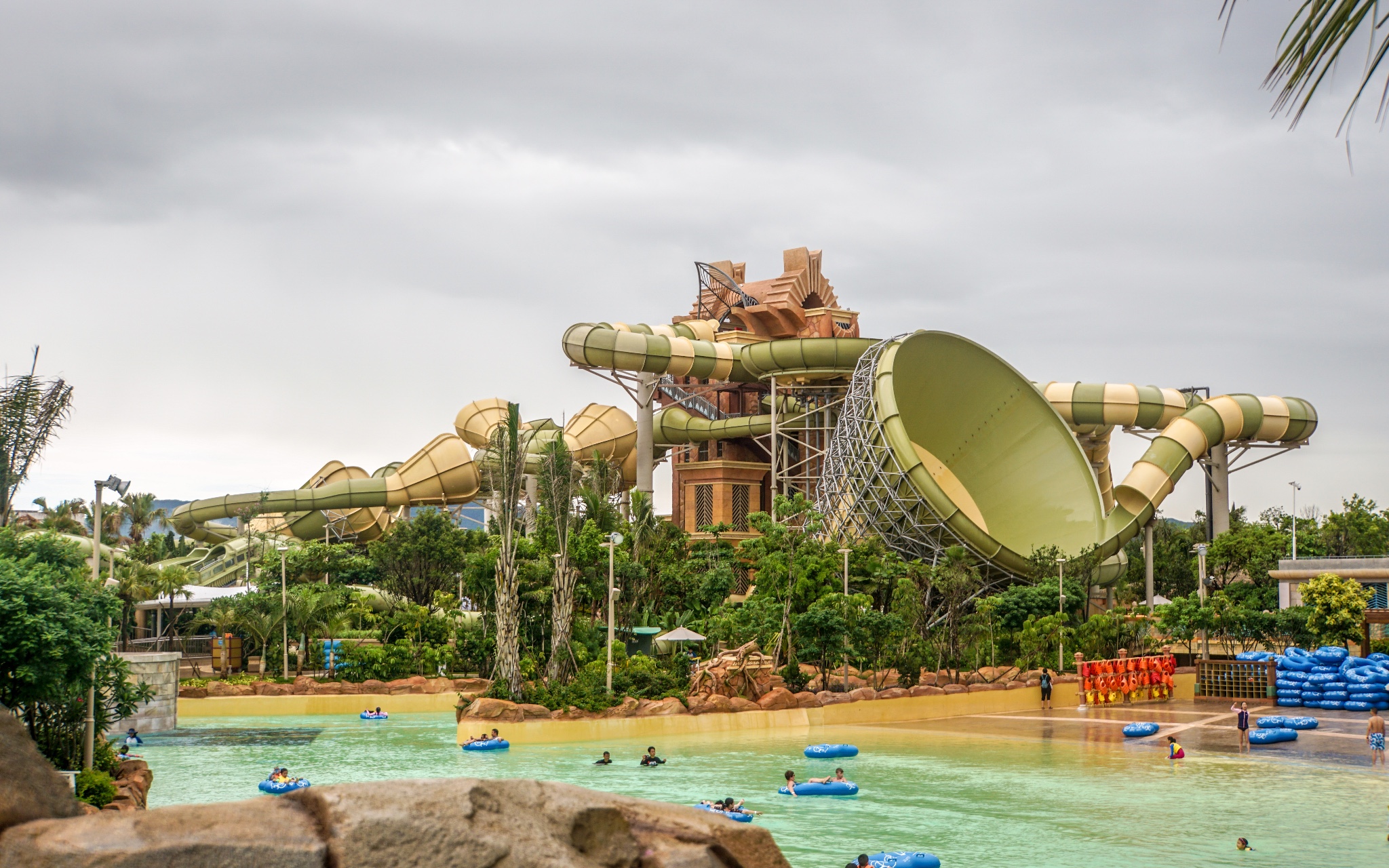 位于海神塔与公主塔之间的项目。比有轨过山车更加刺激!提升机将浮筏升至顶点,突然环绕而下,任由重力和湍流的摆布,在滑道上高速下落。通过一个急转弯后,又是另一个急转,整个滑道弯全长230米,总落差12.7米。天旋地转,精彩刺激,是游客们不可错过的体验的项目