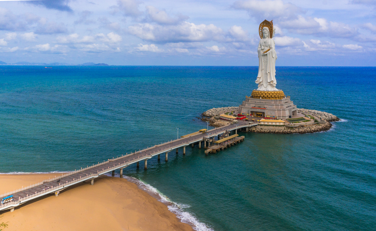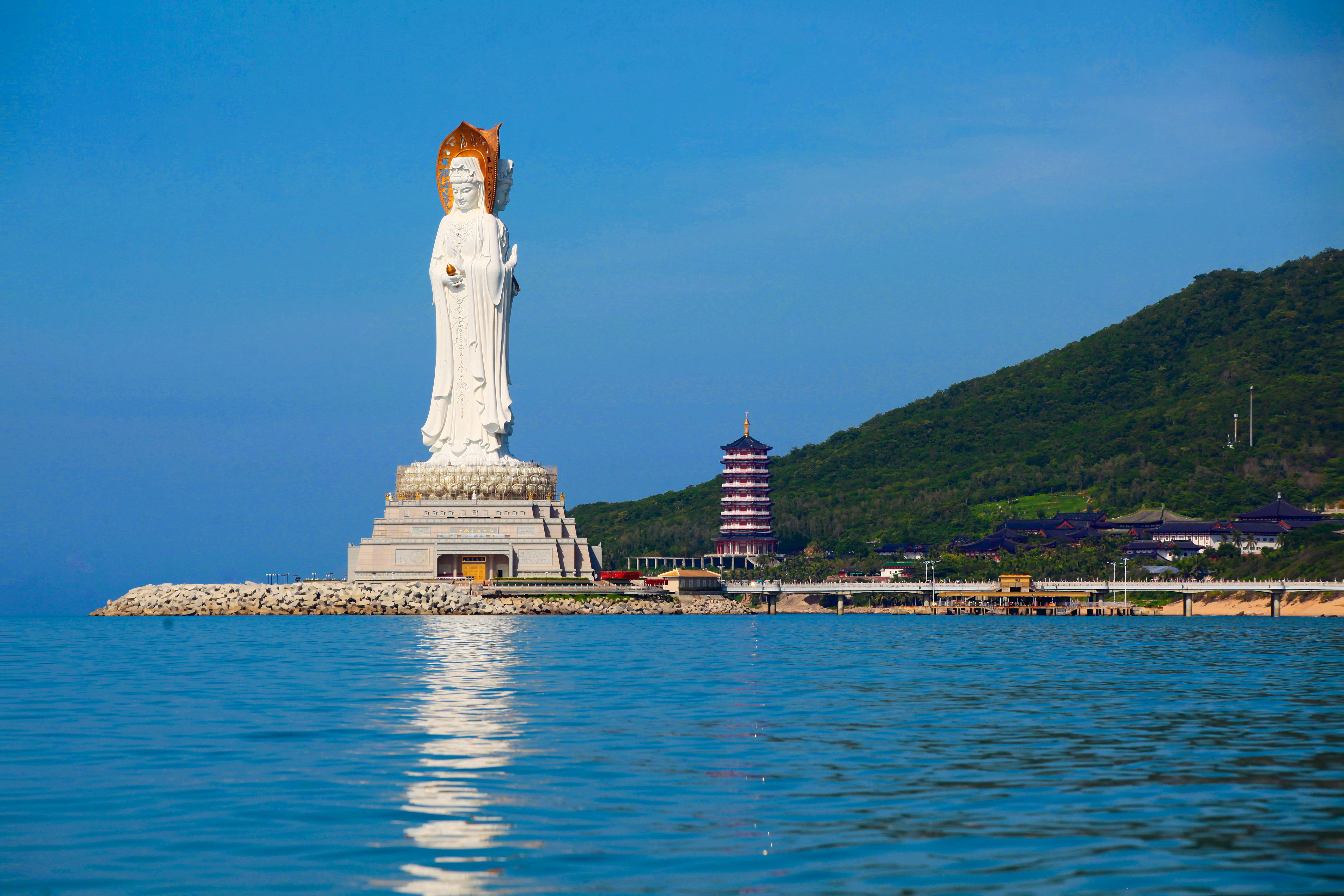 高108米的观音菩萨圣像庄严壮观,立于南海碧波之上,这座圣像不仅是南山文化旅游区的地标,也是众多佛教信徒的朝拜圣地。