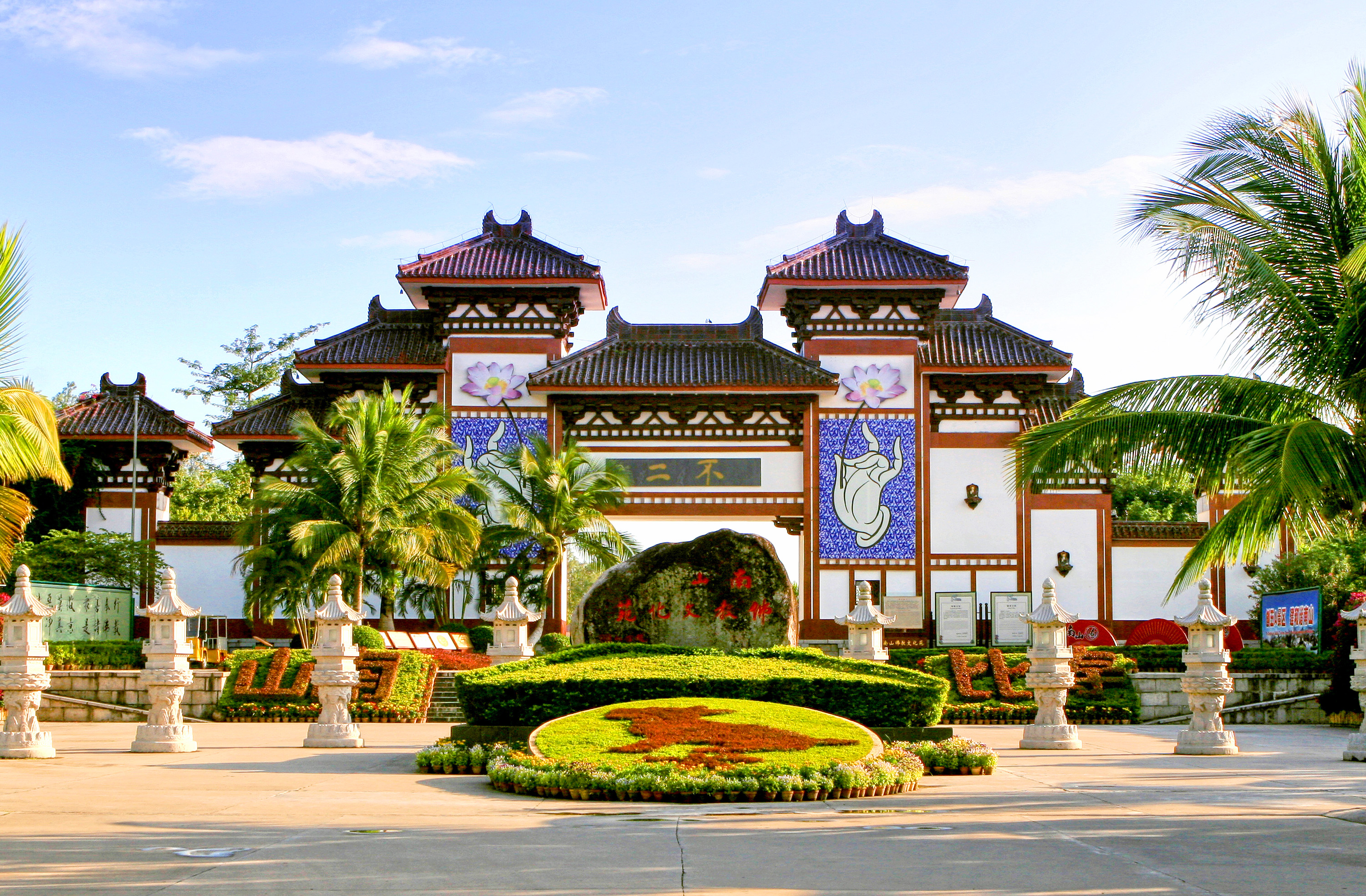 南山寺位于南山文化旅游区内,是一座居山面海的大型寺院。现有仿唐建筑仁王殿、天王殿、钟楼、转轮藏、东西爬山廊、东西配殿、金堂等建筑群,总建筑面积5500㎡。