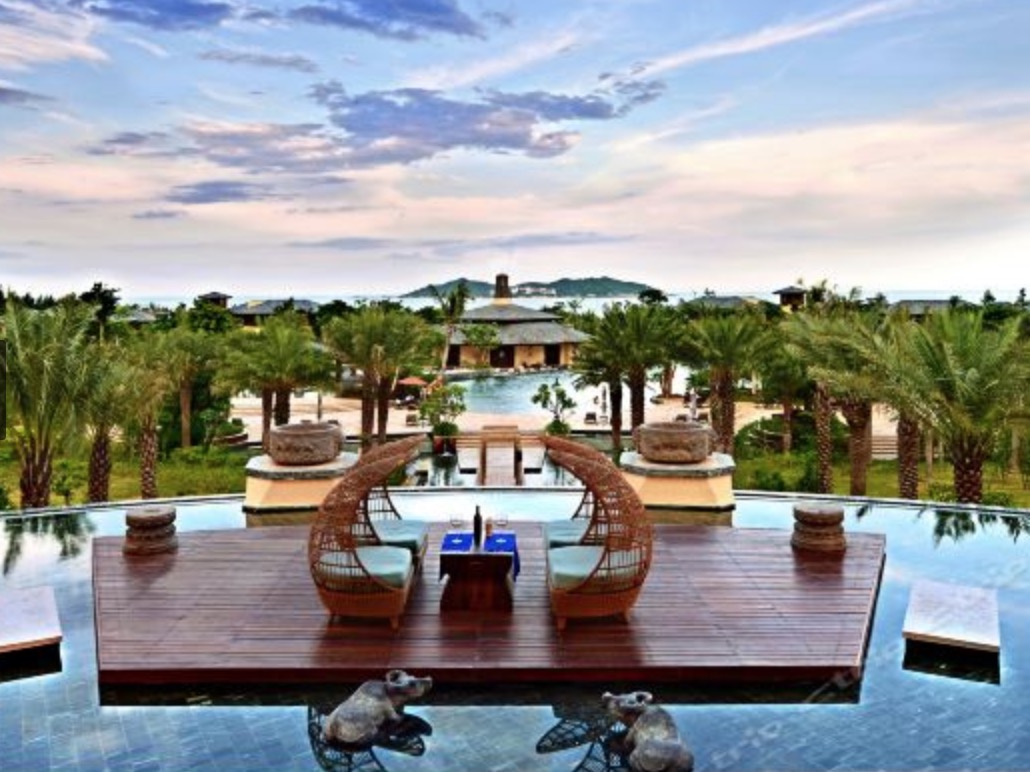 酒店采用了中式的艺术特色,是一个世外桃源般的隐逸天堂,现拥有300余间客房、套房,以及适合全家出游同住的奢华独栋别墅。