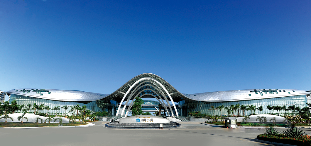 免税城建筑面积12万平方米,分为A、B两栋楼,引进了近300个国际知名品牌,涵盖了化妆品香水、服装服饰、手表首饰、奶粉保健品、家用电器、糖果巧克力等38类免税商品。