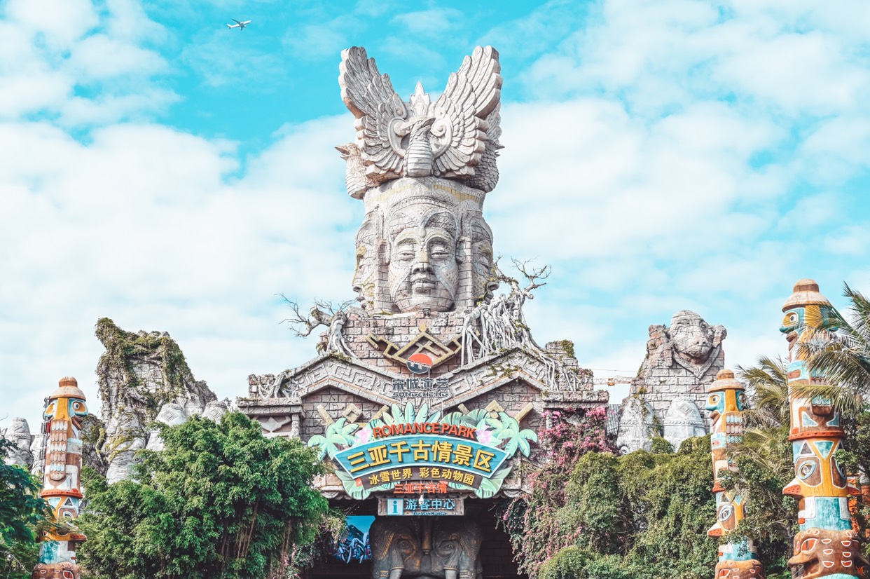 三亚千古情景区掩映在茂密的原始森林和鲜花丛中,有大型歌舞《三亚千古情》、南海女神广场、图腾大道、崖州古街、爱情谷、科技游乐馆、黎村、苗寨、清明上河图、戏水区、小吃广场、文化广场、鬼域惊魂等数十个主题区。