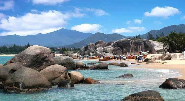 天涯海角游览区,位于海南省三亚市天涯区,距主城区西南约23公里处,背对马岭山,面向茫茫大海,是海南建省31年第一旅游名胜,新中国成立70周年海南第一旅游品牌,国家AAAA级旅游景区。景区海湾沙滩上大小百块石耸立,“天涯石”、“海角石”、“日月石”和“南天一柱”突兀其间,沙滩上大小百块磊石耸立,上有众多石刻。清代雍正年间崖州州守程哲所书,勒石镌字“海判南天”,这是天涯海角最早的石刻。